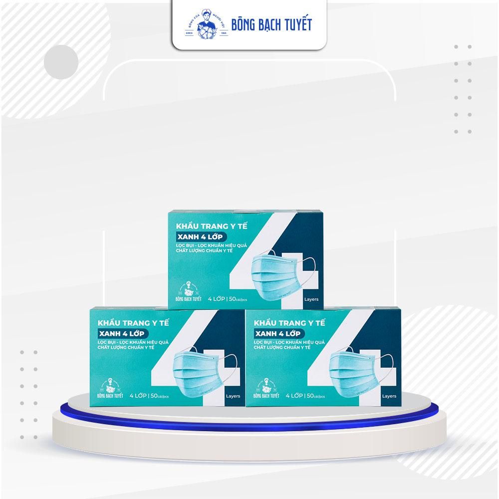 Combo 3 Khẩu trang Bông Bạch Tuyết 4 lớp xanh (50 cái/hộp)